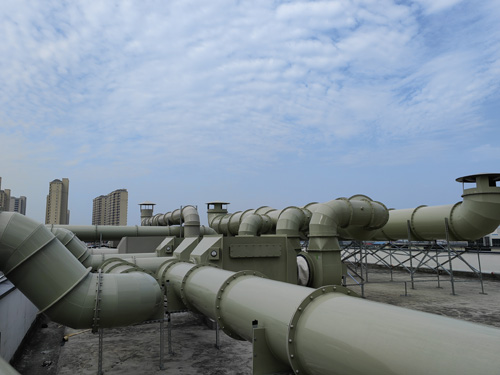 實驗報告室工業廢氣 → 抗逆性炭凈化器 → 引軸流風扇 → 擺放